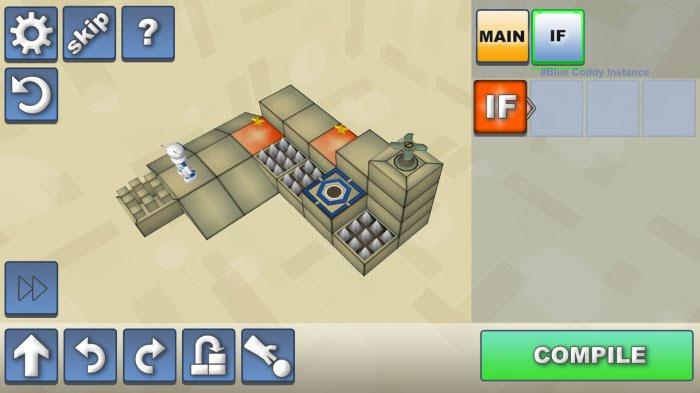 The app starts with the basics, mainly how to compile a working algorithm and how to think like a computer when coding, and progresses to more complicated concepts like “If” statements.